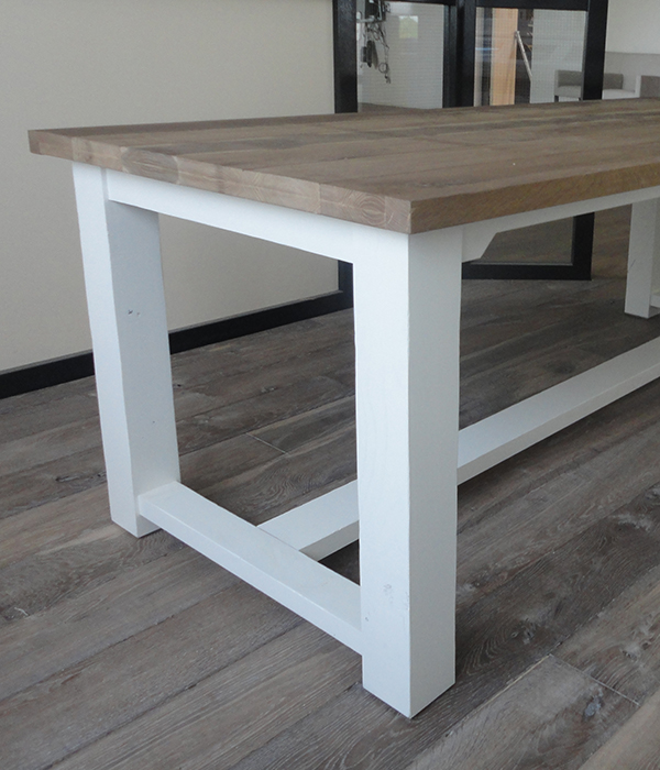 Bij ons vind je eettafels met massieve ambachtelijke houten poten. En wat dacht je ervan om die houten poten te laten transformeren in een witte tint? In onze exclusieve spuitcabine wordt elke poot met zorg en vakmanschap bedekt met meerdere lagen witte verf. Zo ontstaat een uitstraling die tegen een stootje kan en jarenlang mooi blijft.