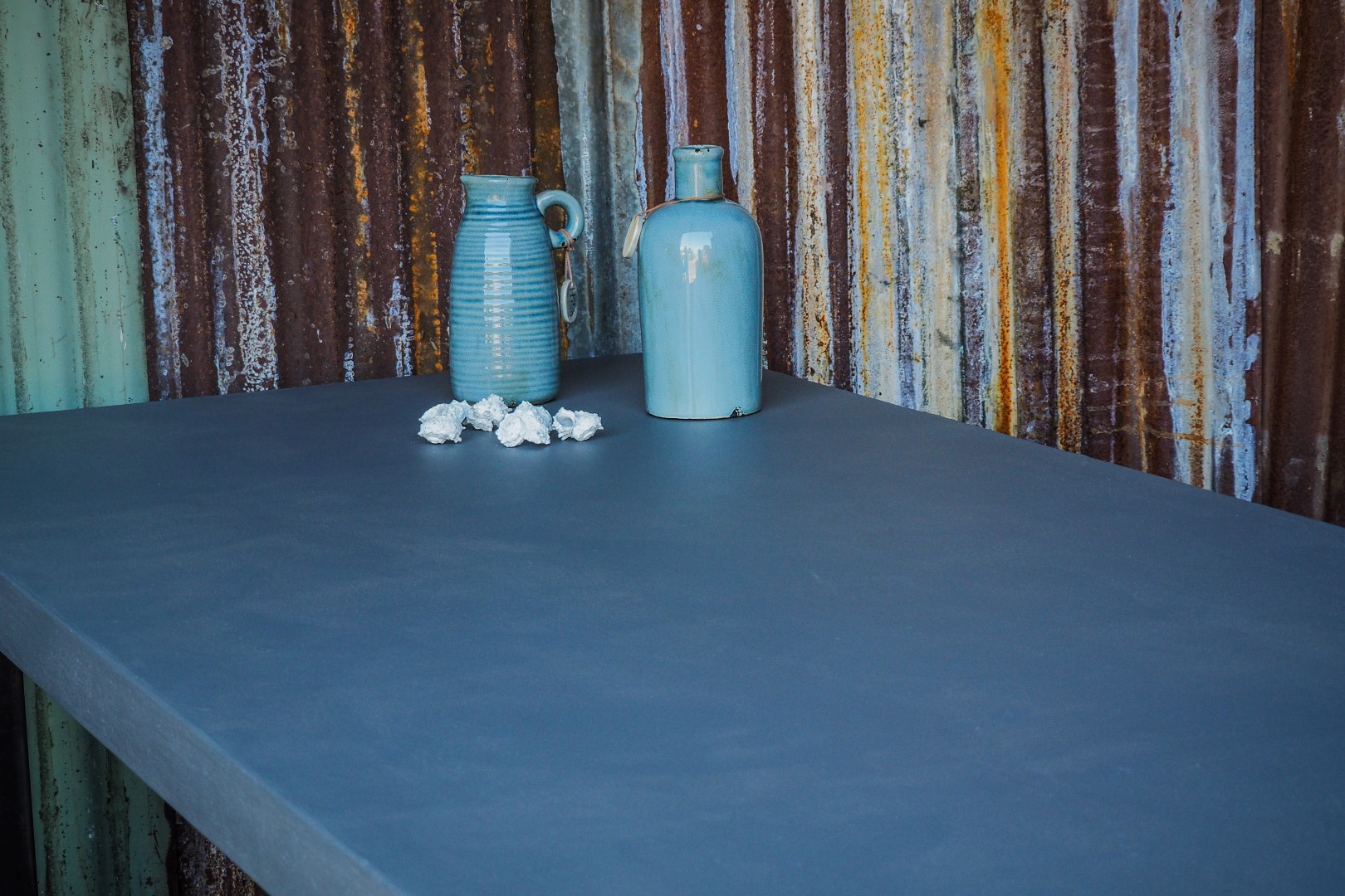 Deze kleine betontafel is verkrijgbaar in verschillende kleuren.