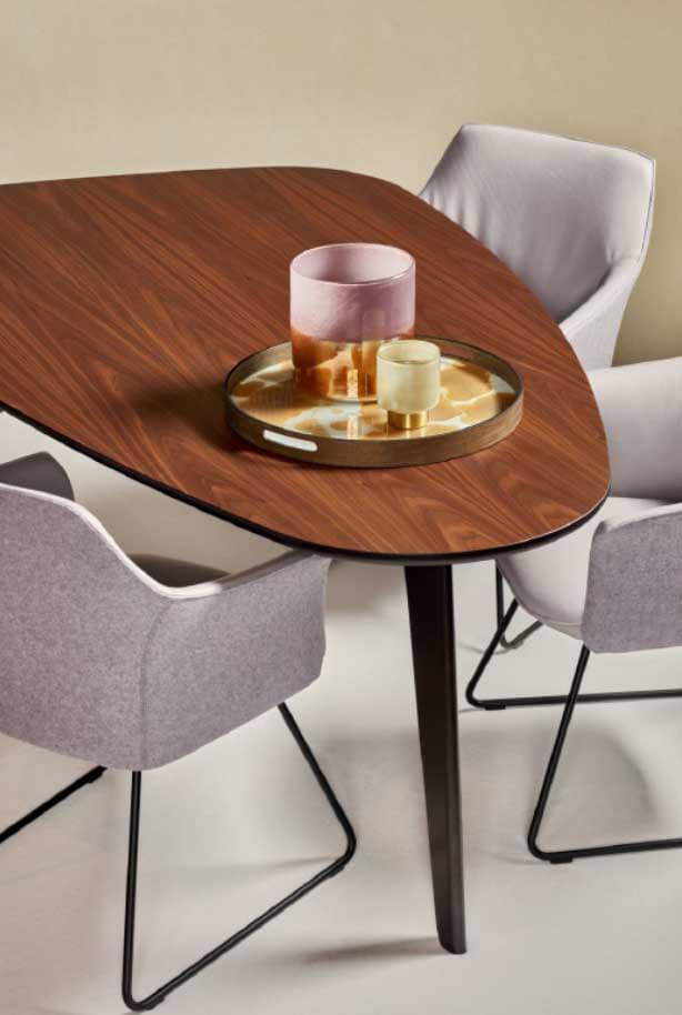 Soms lijkt het of alle tafels hetzelfde zijn. Rechtlijnig, een beetje saai. Leolux zocht een nieuwe vorm, een tafel die kleur geeft aan het interieur.