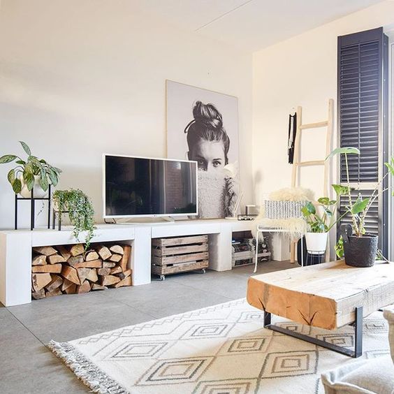 Een onderdeel wat bijna onmisbaar is in een Scandinavische interieur is hout. Dit kan terugkomen in zowel de vloer, wanden, maar ook in de details. Bijvoorbeeld door een houten eiken plank op je huidige dressoir of tv kast te leggen. Of legplanken van hout op te hangen aan de wanden. Het oogt niet alleen mooi, maar is ook meteen praktisch.