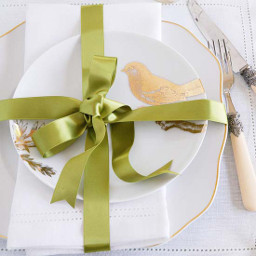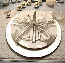 Ook op het bord kun je iets leggen of zetten dat het geheel helemaal af maakt. Leg een klein cadeautje, een kerstversiering of lekkernij op het bord. Of decoreer je servies met een mooie strik of bloem. Zorg er wel voor dat de decoratie makkelijk weggehaald en ergens anders neergezet kan worden.