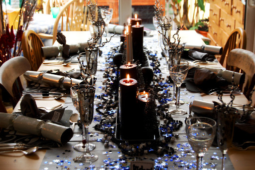 Wanneer je kiest voor het uitserveren vanuit de keuken, kun je je uitleven op de tafeldecoratie. Er hoeft nu geen ruimte meer over te blijven voor pannen en schalen, hierdoor is er plek voor een mooi kerststuk of bijvoorbeeld sfeervolle kandelaars. Een andere eenvoudige blikvanger is een glazen stolp of een windlicht, gevuld met kerstballen en -slingers.