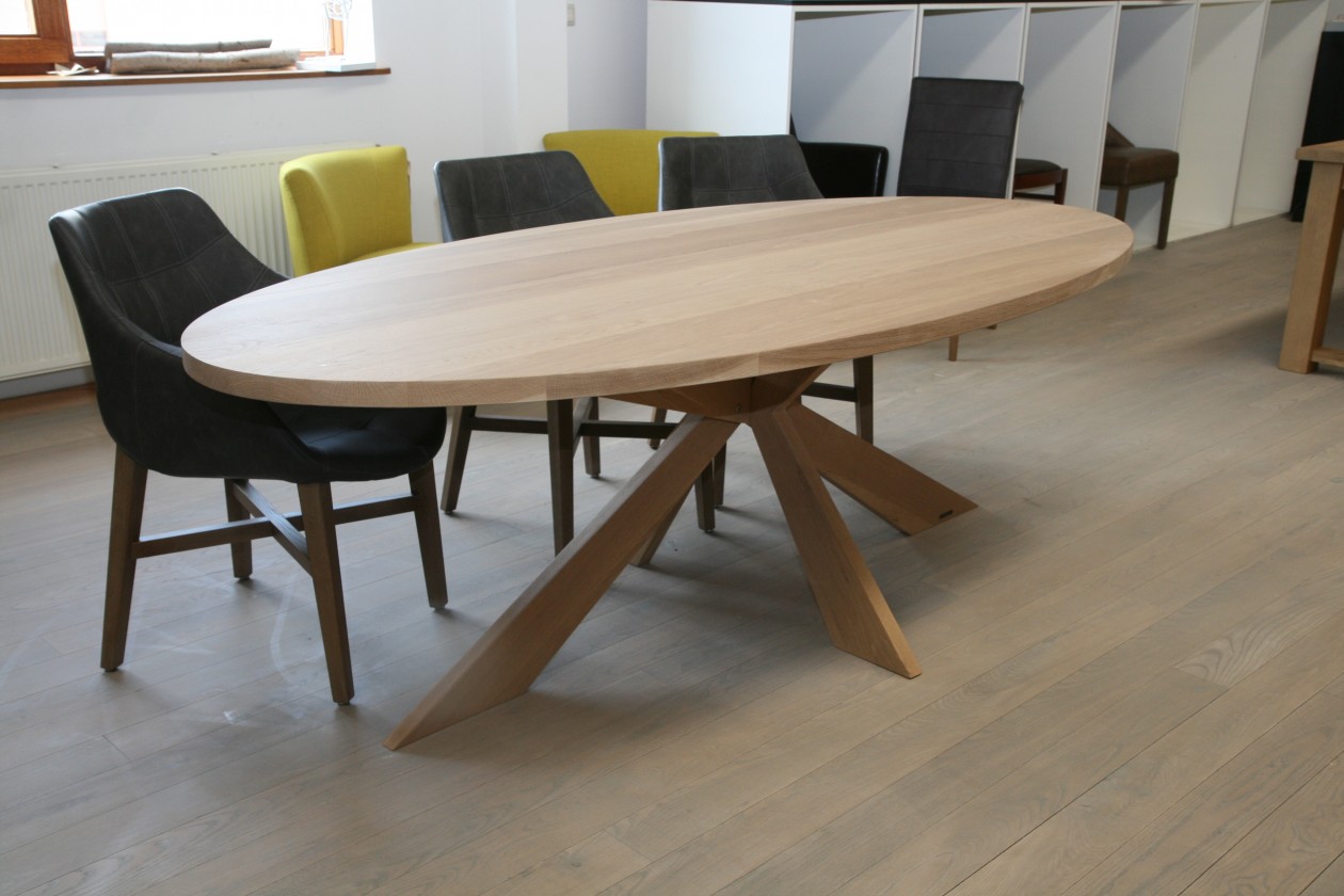 Massieve houten eettafels, in eiken, kersen, noten, maple en essen. Door eigen inkoop en productie leveren wij deze uit voorraad tegen lage prijzen.