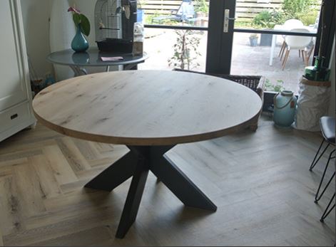 Deze prachtige tafel is leverbaar in diverse afmetingen. Met een massief eiken blad van 3cm dik. Het blad is door u naar wens te behandelen.