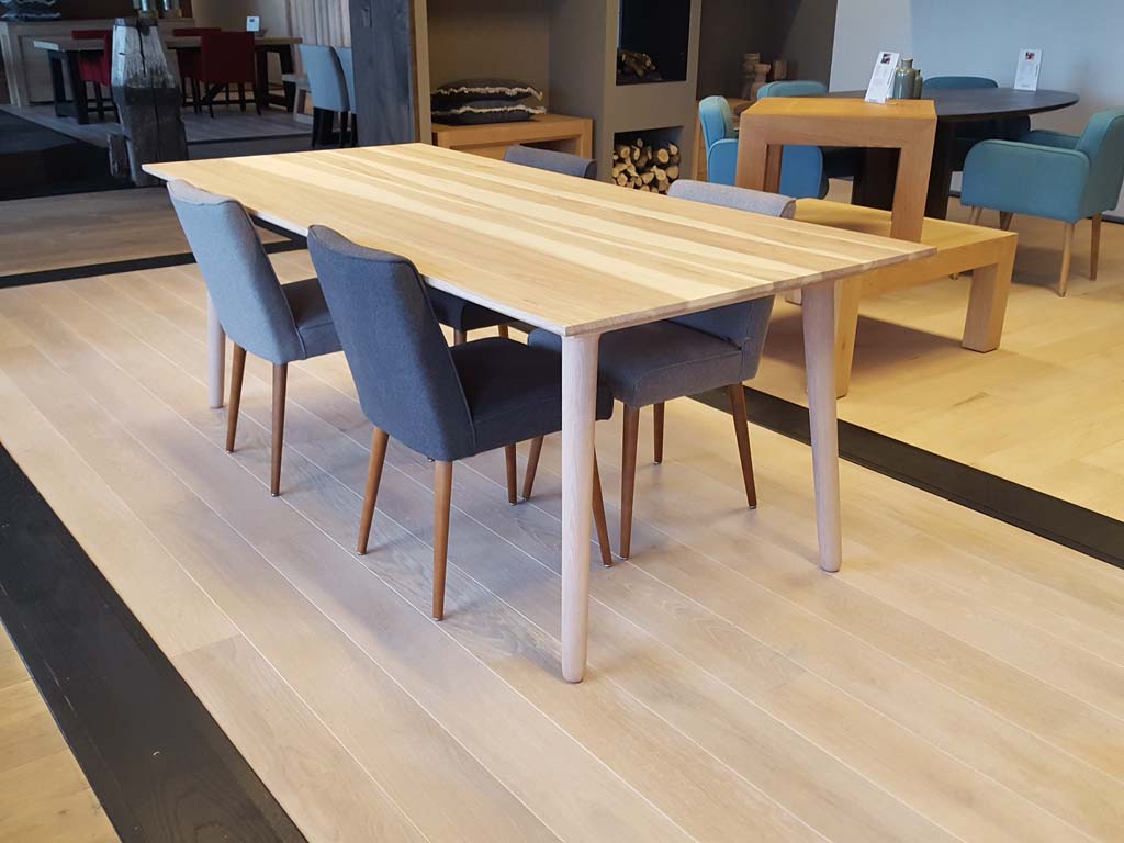 De tafel kunnen wij in veel verschillende kleuren afwerken. In eiken zijn er wel meer dan 30 kleuren mogelijk. In onze speciale kleurmenghoek kunnen wij de kleur voor u op maat mengen. Kiest u voor Essen dan zal de tafel altijd een lichte kleur krijgen.