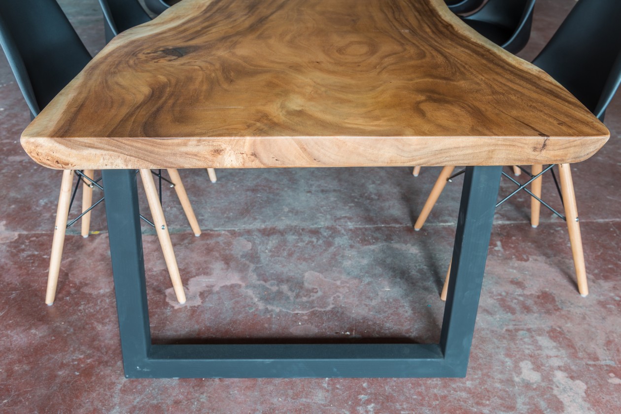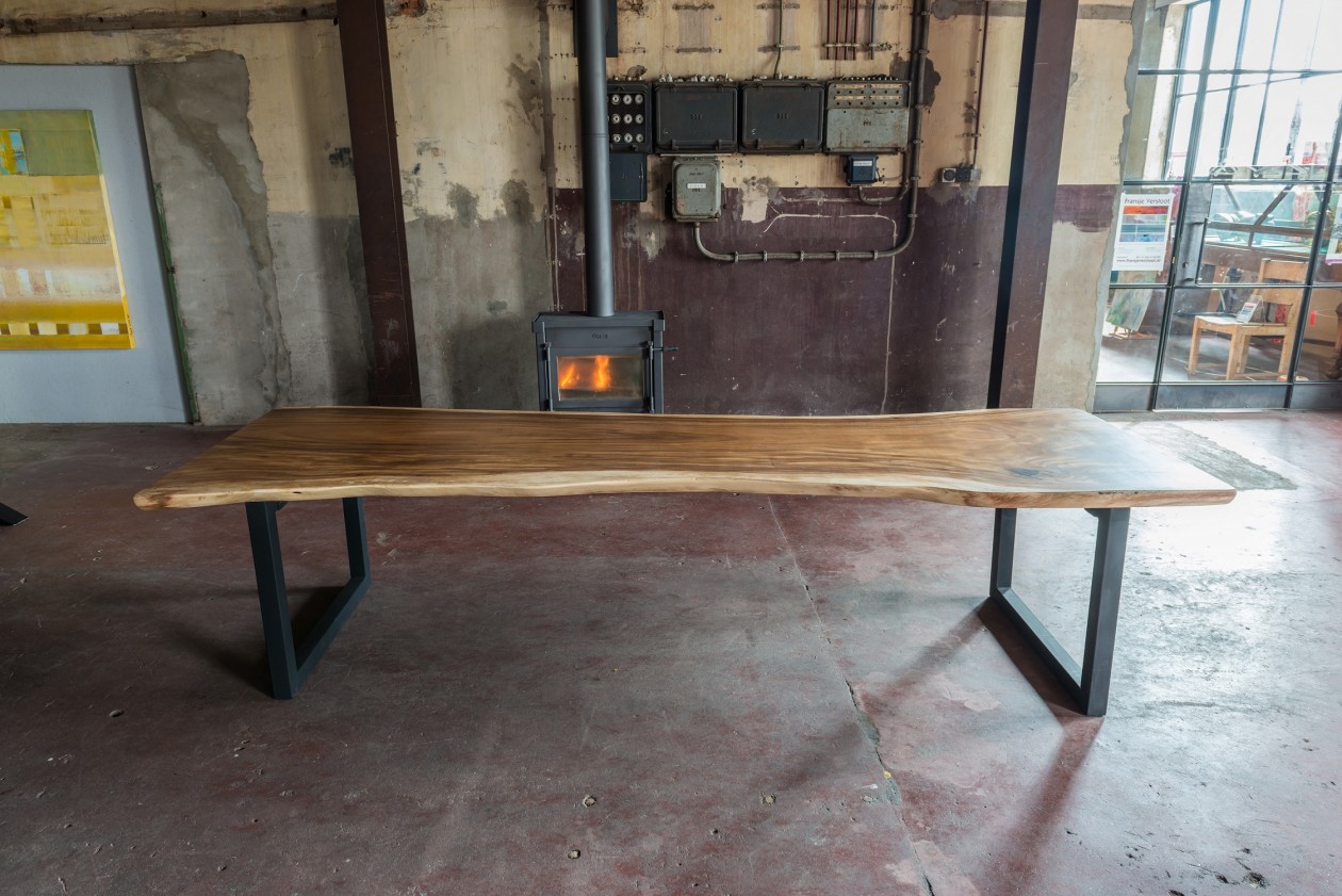 We verkopen losse massieve tafelbladen, onderstellen en hout om een eigen onderstel te maken. Zo maakt u uw eigen pronkstuk in de woonkamer.