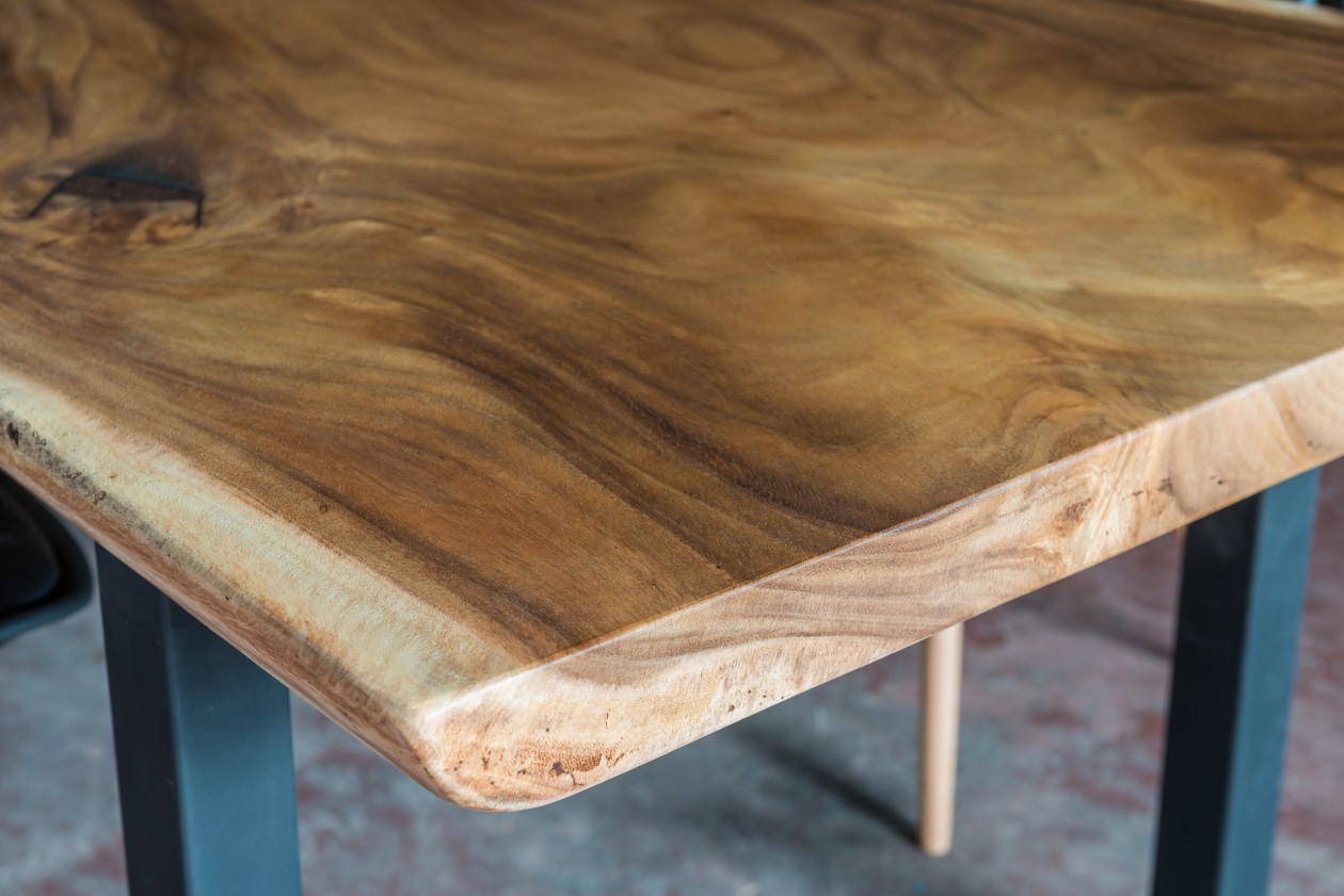 Eppinga kan massief houten tafelbladen op maat voor u leveren. Direct uit voorraad. Messcherpe tarieven door eigen import. Eiken, Padouk, Vuren, Mahonie, Suar, Piquia en Sappupira. De houten tafelbladen zijn leverbaar van 2 tot wel 11 meter. We leveren uitsluitend bladen uit één stuk hout. Dus niet samengevoegde bladen of gelijmde stukken hout. De massieve bladen geven uw interieur een echte “eyecatcher”. Door de unieke vorm en de natuurlijke uitstraling weet u zeker dat u een bijzonder meubelstuk in huis haalt.