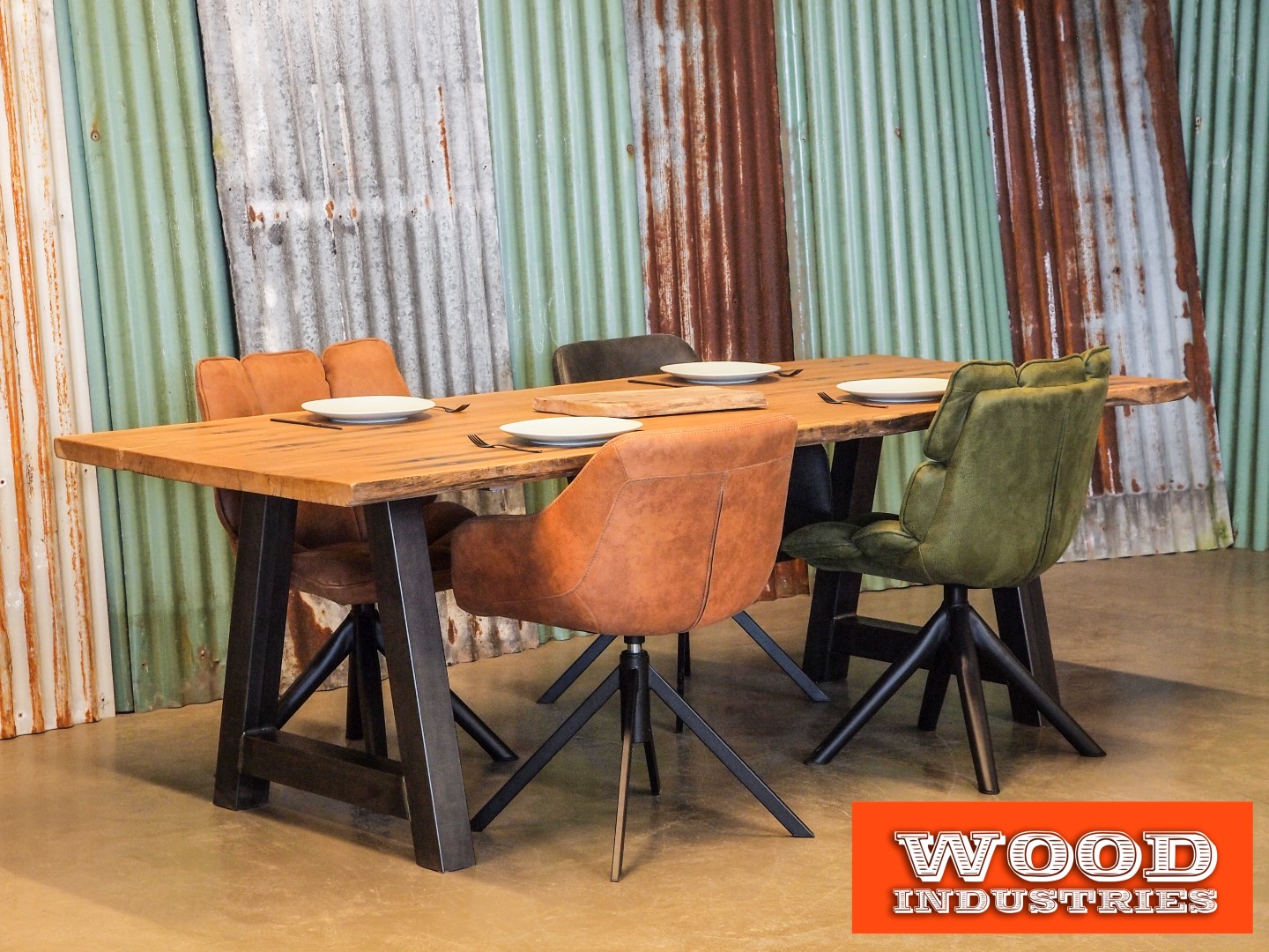 Het tafelblad wordt uit een stuk boomstam gehaald en is dan ook mooi een geheel. Door hun vorm zijn de tafelbladen niet overal even breed, wat een speelse en natuurlijke look geeft aan deze tafel. Het is een erg stevig hout wat zeker tegen een stootje kan! Onze meubelmakers maken deze tafel helemaal naar wens op maat, en dat in onze eigen werkplaats! U kunt dan kiezen voor een set poten of een midden onderstel, ook deze kan naar wens op kleur worden gemaakt. De tafel wordt binnen 5 weken geleverd, en onze bezorgers zullen deze tafel voor u monteren, tot u helemaal tevreden bent!