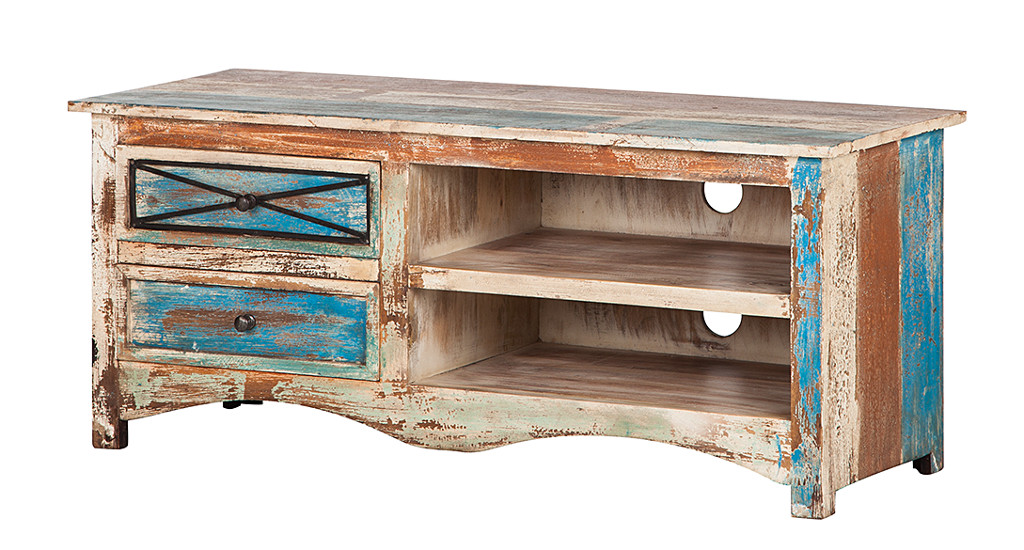 India is een land met veel kleuren. Een beetje van die kleurigheid is overgegaan op lowboard India van het merk Landhaus Classic. Uitgevoerd in koloniaalkleurig bont, heeft dit tv-meubel een mooie vintage uitstraling. Dit tv-meubel past daardoor goed in een landelijk interieur. Een tv-meubel hoeft er niet altijd modern uit te zien. Met dit meerkleurige mangohouten lowboard zit je dan goed. Met haar oorspronkelijke look is dit meubelstuk toch voor alle moderne gemakken uitgerust en kun je er al je apparatuur en kabels makkelijk in kwijt. Zo hoef je vanuit je bankstel niet tegen al die snoeren, kabels en apparatuur aan te kijken.
