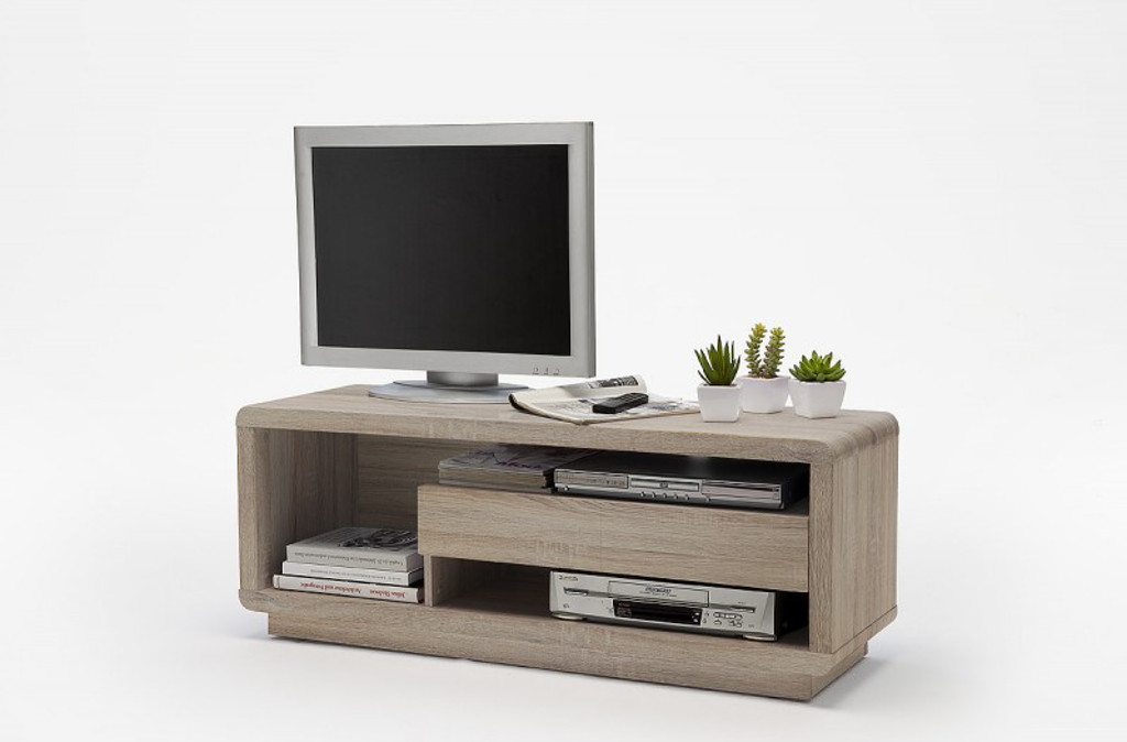De Gregor tv-kast is gemaakt van sonoma eikenfineer. Deze tv-kast heeft één schuiflade en is ook verkrijgbaar in hoogglans wit. Deze tv-kast heeft een mooi design en is een ware blikvanger in iedere woonkamer.