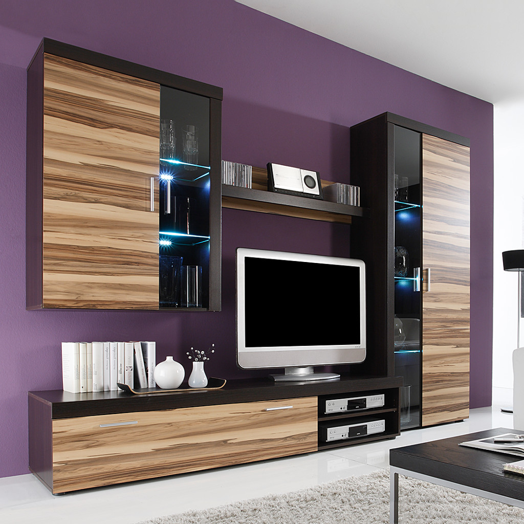 Tijdens je eerste indruk ga je makkelijk voorbij aan het feit dat dit wandmeubel, door zijn uitgekiende design en geraffineerde techniek, een enorme hoeveelheid ruimte biedt. De voorkant is een mix van moderne lijnen, het notenhouten motief geeft de kast een luxe uitstraling. Trendy maar toch tijdloos. De vitrine biedt de perfecte mogelijkheden om mooie dingen in ten toon te stellen, hoewel de wandkast van zichzelf ook al een blikvanger van formaat is.