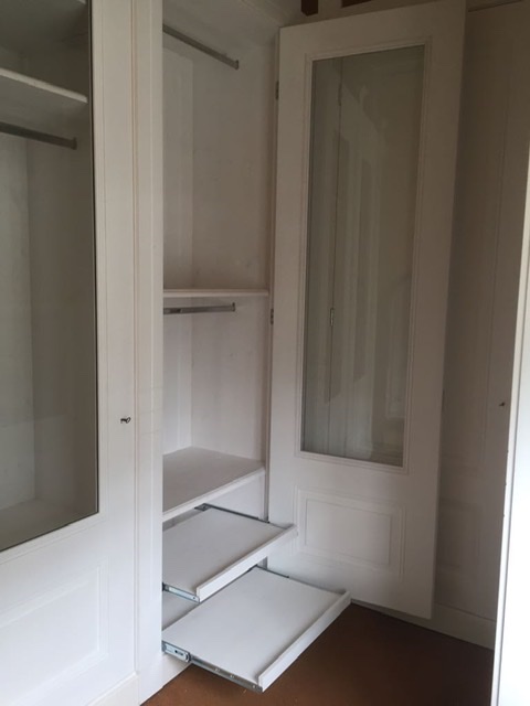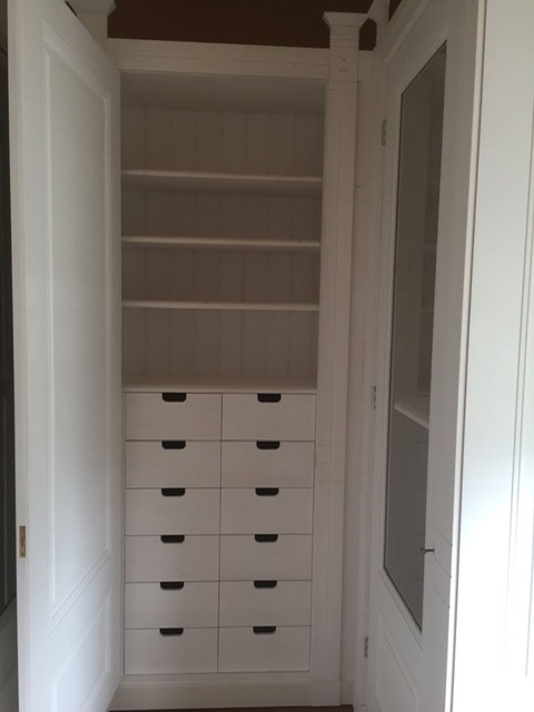 Zoals onze kamers en suite bouwen we ook onze kasten in deze stijl, alles is maatwerk en wordt vervaardigd van massief hout.