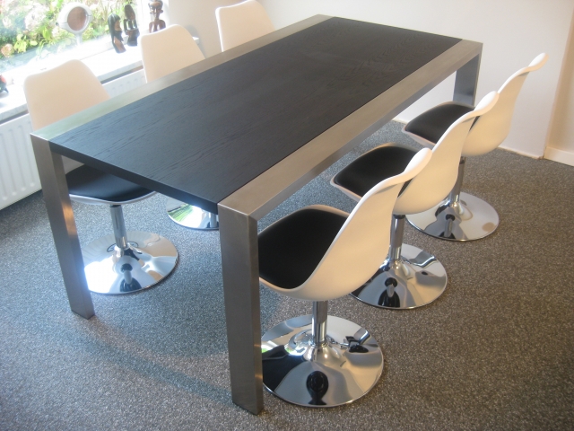 Uitvoering: geborsteld RVS frame, eiken blad