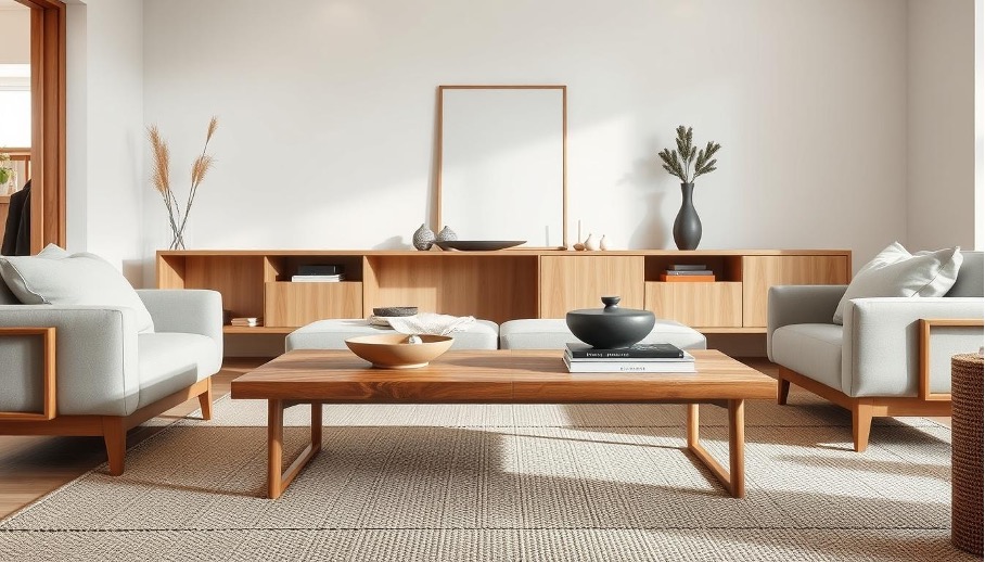 Ontdek wat een Japandi salontafel is: een perfecte mix van minimalistische Scandinavische en Japanse stijl voor een rustige, elegante woonkamer.