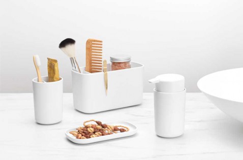 Brabantia komt met nieuwe badkamerartikelen - van zeeppomp tot douchewisser en personenweegschaal, van tandenborstelhouder tot zeepbakje en badkamer caddy.