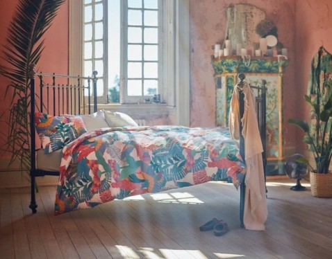 Een energieke dag begint in een kleurrijke slaapkamer met de najaarscollectie Auping bedtextiel. Pastel- en poedertinten geven slaapkamer een frisse look.