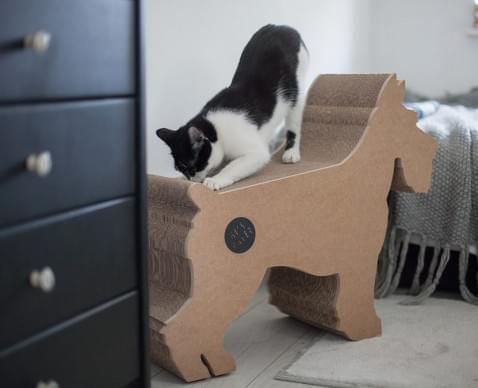 Maak je kat blij en spaar je meubels met deze te gekke krabpaal in de vorm van een hond :)