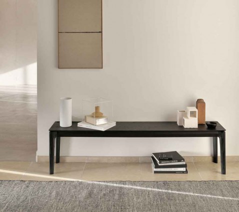 Ethnicraft maakt gebruik van rijk donker hout - zoals teak en mahonie - in haar meubilair om een gevoel van warmte en rust te scheppen in een ruimte, vergelijkbaar met een veilig en mysterieus woud.