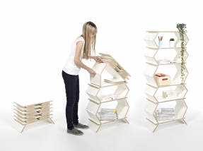 De innovatieve nieuwe kast met de naam Sukoya, ontworpen voor blomus door Kazushige Miyake, is geïnspireerd door de flexibele rekken in Japanse tempels.