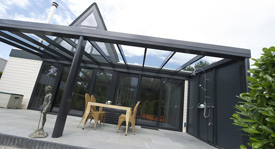 | Een aanbouw met de eigenschappen van een cabriolet! Dat kan met een schuivend dakraam van Bröring. Fraai en comfortabel! |