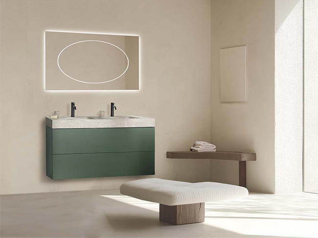 | | | | Kleur in de badkamer | | | | Waar badkamers jarenlang werden gedomineerd door neutrale kleuren zoals wit, grijs en beige, zien we nu een duidelijke verschuiving: kleur maakt zijn intrede in de badkamer. | | Ga ook voor kleur | | |