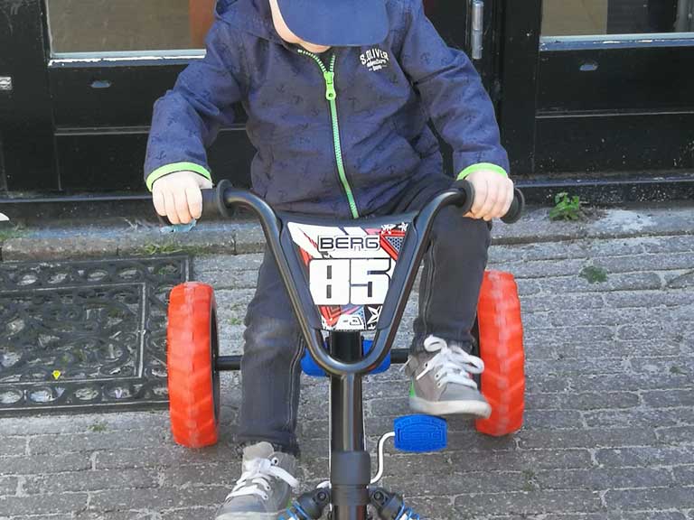 Deze skelter kan zowel voor al achteruit rijden en kan binnen een paar seconden stilstaan.