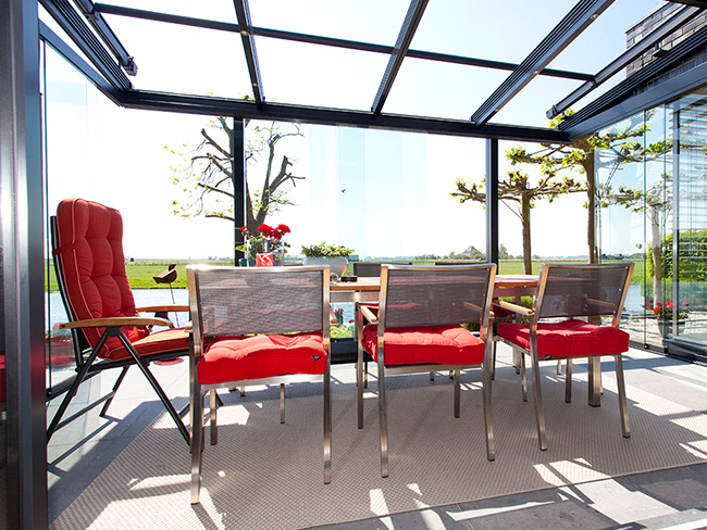 Door de glazen wanden onder uw schuifbare overkapping wordt het 'buitengevoel' meteen bereikt; daglicht naar binnen en uitzicht naar buiten. | | Bekijk meer! | | |