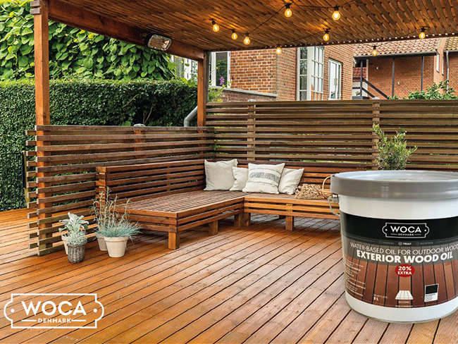| | | | Laat de zon maar komen! | | | | 'De WOCA Exterior Oil is een watergedragen olie die specifiek is ontwikkeld voor buitenhout. De Exterior Oil is sneldrogend, eenvoudig aan te brengen en heeft een matte, natuurlijke uitstraling. Dankzij de speciale pigmenten in de olie is het oppervlak lang beschermd. | | Meer informatie | | |
