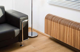 De radiator is afgewerkt met een houten mantel en verkrijgbaar in diverse houtsoorten.