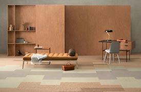 Marmoleum Modular biedt veel beton- en steendessins in grote vierkante en rechthoekige tegels.