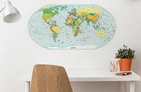 Wereldkaarten zijn er in allerlei soorten en maten en maakt je kale muur een stuk minder saai.