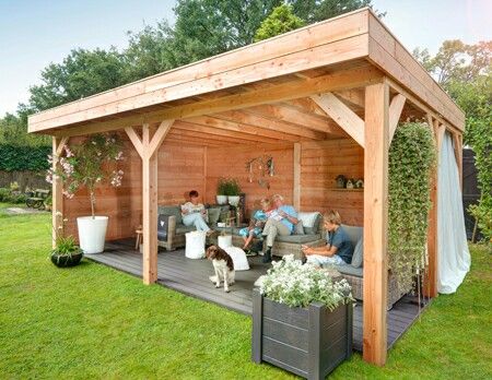 Dit is een overkapping die je gerust een heuse tuinkamer kunt noemen! Wie wil dit nu niet in zijn tuin?