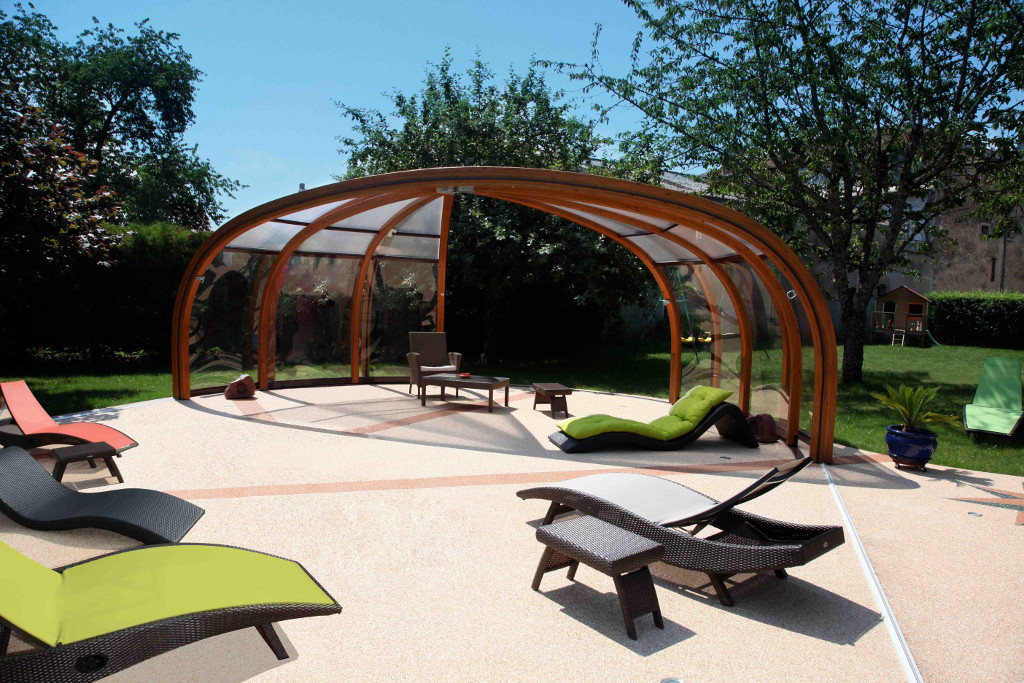 De overkappingen van Abrisud worden op maat gemaakt en afhankelijk van de vorm kunnen panelen open en dicht geschoven worden. De Abri-spa en de Abri-rotonde zijn modulaire overdekkingen, waarvan de opening 360 graden te verschuiven is. De panelen zijn zo te draaien dat je altijd uit de wind zit!