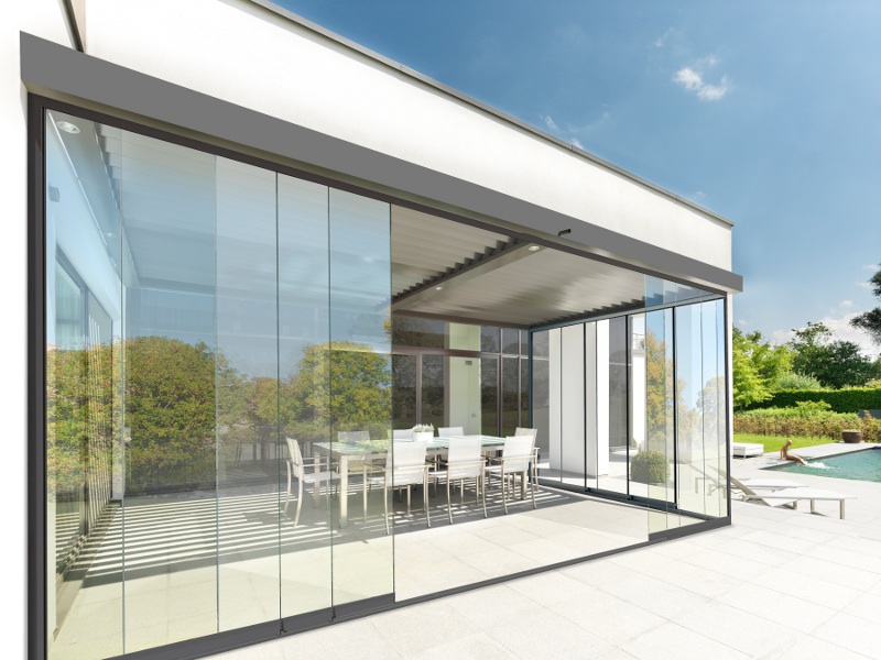 Het weer kan je nu eenmaal niet veranderen. 'Maar je kan het wél naar je hand zetten', luidt het bij HAROL in Diest. Vorig jaar lanceerde HAROL de 'Umbris' – een slimme combinatie van zonwering en neerslagbescherming in één. Met het nieuwe SF20 glazen schuifwandsysteem zet je nu ook de wind buitenspel: voluit genieten van de zon dus, en dat in elk seizoen.