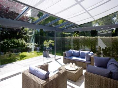 Met een terraskamer van Solarlux bent u beschut tegen wind en regen en opent u de terraskamer 100% als de zon schijnt. Dit wordt mogelijk gemaakt door een glazen overkapping en verticale beweegbare vouwwanden, die in een handomdraai eenvoudig naar de zijkanten geschoven kunnen worden. Ook is er de mogelijkheid om de terraskamer gedeeltelijk te openen, waarmee u voorkomt dat u in de tocht zit. En bij slecht weer kunt u de terraskamer geheel afsluiten, zodat u toch nog behaaglijk buiten kunt zitten.