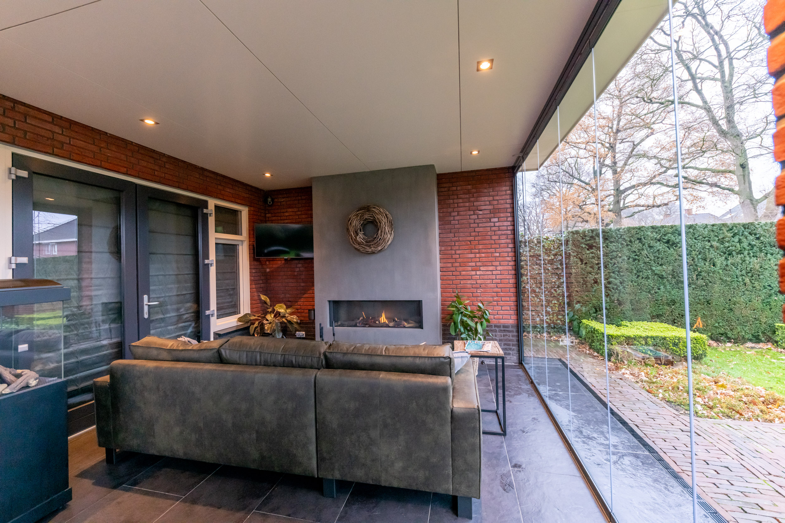 Een overkapping of buitenverblijf geeft u op de momenten dat het weer aangenaam is veel vrijheid. Maar als het koud is, waait of regent bent u toch beperkt in uw mogelijkheden. Met glazen wandsystemen maakt u de overkapping of uw buitenverblijf wind- en waterdicht. Het resultaat is een heerlijke ruimte die ook in de herfst en winter volop te gebruiken is. Zeker als u de ruimte extra verwarmt met een terrasheater of een gezellige vuurtafel. Zo heeft u in de koude maanden veel plezier van uw buitenruimte.