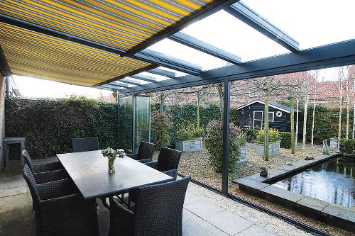 SelectWindows bouwt zijn overkappingen met duurzame materialen. Een stevige basis van staal creëert een constructie die voor jaren staat als een huis. De aluminium profielen zijn van hoge kwaliteit en maken een dakhelling van 5 tot 45 graden mogelijk. De constructie is voorzien van gelaagd dakglas en een geïntegreerde regenwaterafvoer. Doordacht is de zonwering die onder de glazen overkapping schuift. Hiermee kan zon of felle lichtinval met één druk op de knop automatisch gereguleerd worden. Het doek is leverbaar in diverse uitvoeringen en blijft, dankzij de bescherming van het glazen dak, in perfecte staat. Wordt het zonnig geel, koelblauw of designwit? Zoveel leuks om over na te denken, zo’n fijn vooruitzicht op ontelbare uurtjes samen buiten… Het leven is verrukkelijk!