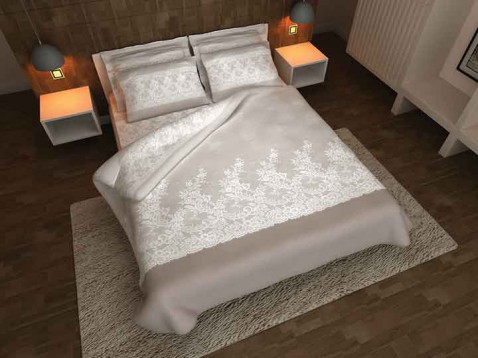 Dessin Alexis is een luxe dekbedovertrek gemaakt van zuiver percal katoen. Leverbaar in 3 stijlvolle kleuren, wit, zilvergrijs en taupe.