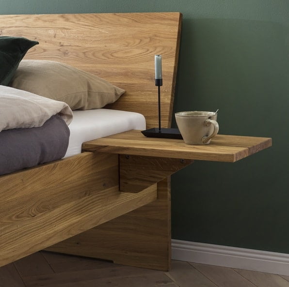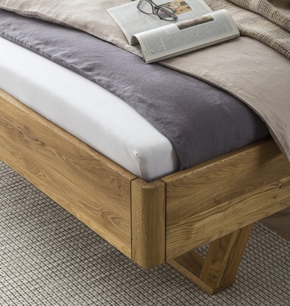 Dit volledig massief houten bed is gemaakt van 2,5 cm dik eiken hout. Er wordt een middenbalk bijgeleverd met een extra middenpoot voor het plaatsen van een bodem. Een elektrische bodem is op deze manier tevens te plaatsen. De bodem kan op 4 hoogtes ingesteld worden door metalen platen die bevestigd worden in het bed. Het bed wordt geleverd incl. een brede houten poot van 25,5 cm hoog, welke bevestigd worden aan de zijden met schroeven. Het hoofdbord heeft een strakke afwerking. Door te werken met natuurlijke materialen is het mogelijk dat er noesten in het hout voorkomen. Tevens wordt er gewerkt met een milieuvriendelijke olie waarmee het eiken hout is behandeld. Hierdoor behoudt het bed zijn natuurlijke uitstraling. Het bed is eenvoudig zelf in elkaar te zetten aan de hand van schroeven en metalen platen.