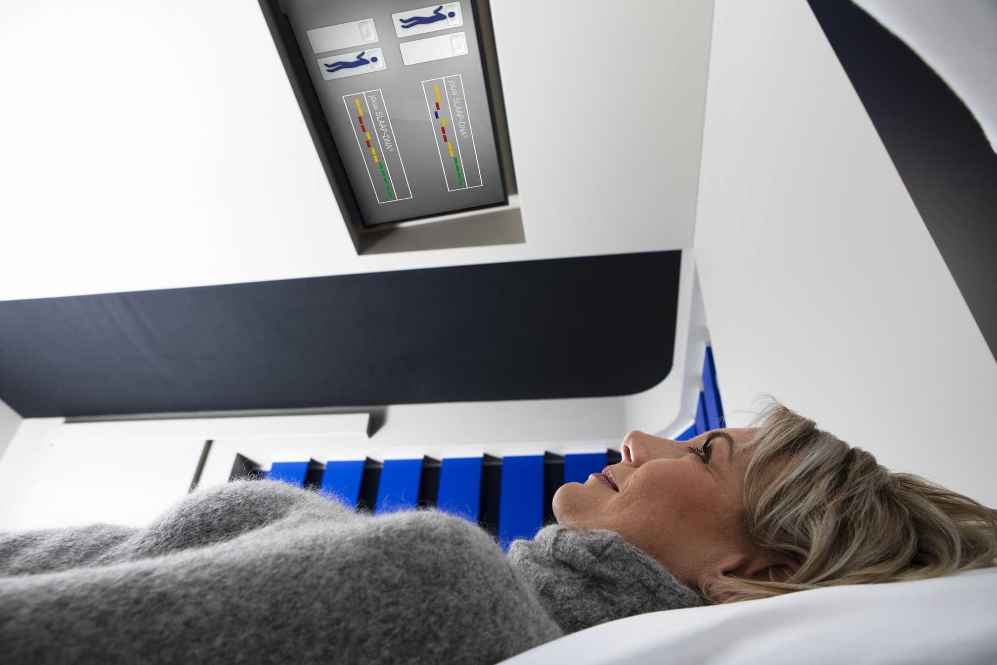 Terwijl de klant ontspannen geniet van een leuke mediavoorstelling worden de nodige metingen uitgevoerd en wordt zijn/haar persoonlijke slaapprofiel (SLAAP-DNA®) vastgelegd. Uiteraard houdt het systeem ook rekening met zijn/haar verschillende slaaphoudingen, want zelfs als hij/zij rustig slaapt, verandert hij/zij onbewust van houding.