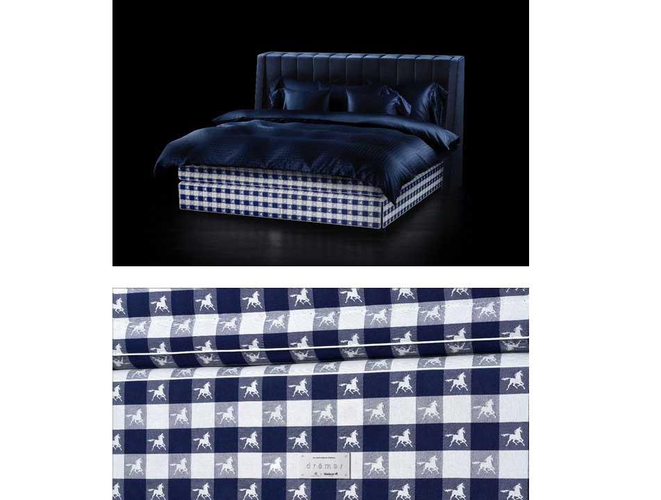 Elk steekje van het patroon is naadloos uitgelijnd, een proces dat de grootst mogelijke precisie vereist van de ambachtslieden. Aan het voeteneinde van het bed staat de opbeurende tekst “dremers The Day Is Yours”. Het verzilverde koperen naamplaatje op de bedbodem is geëtst met “dremers” en de logo’s van Hästens en Ferris Rafauli. Het dremers hoofdbord is een kunstwerk op zich en vormt in elke slaapkamer een ware blikvanger. De fluwelen panelen en zijdelen hebben dezelfde kleuren als het dremers bed en zijn royaal gevuld om te zorgen voor uitzonderlijk comfort en afgewerkt met biezen die de verleidelijke vorm van het hoofdbord benadrukken. De gelakte houten poten zijn exclusief ontworpen voor het dremers bed en zijn verkrijgbaar in zwarte en blauwe tinten.