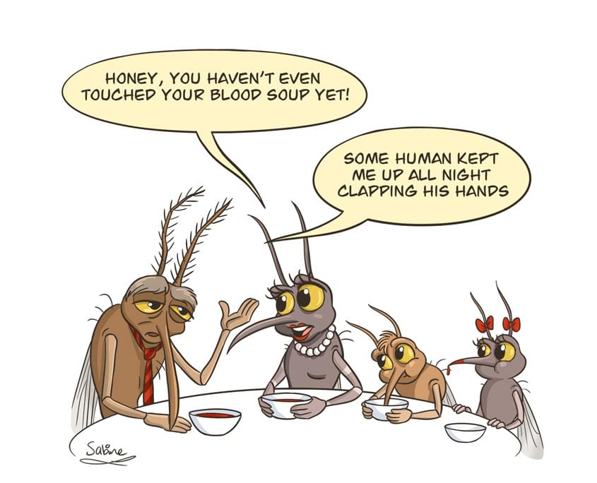 Nu zou je denken dat een mug jouw bloed nodig heeft om van te leven, maar dat is niet helemaal waar. Muggen zijn vegetariër - eten dus geen vlees - en leven van het nectar uit planten. Alleen als een muggenvrouwtje bevrucht is, zal ze bijten: haar lichaam heeft dan eiwitten nodig voor de ontwikkeling van haar eitjes. En die eiwitten haalt ze dan uit het bloed van mensen en dieren. Met een beet, kan ze tot wel driehonderd eitjes leggen. En dat doet ze het liefst in water.