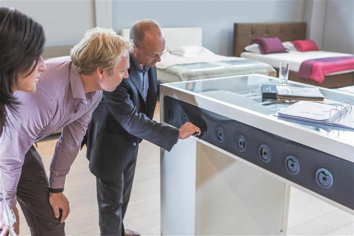 Het meest indrukwekkende aspect van het Ergosleep®-concept is de slaapervaring zelf. Daarom kan geen enkele uitleg of illustratie de klant beter overtuigen dan het échte voelen, van een persoonlijk afgestemd Ergosleep®-bed. In de Ergosleep® Belevingsstudio beleeft de klant het SLAAP-DNA®-concept zelf van A tot Z.