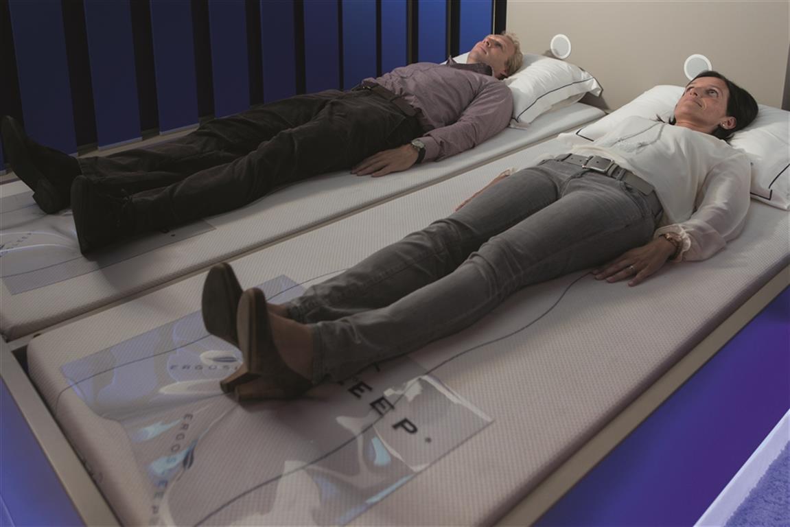 Tijd voor de échte beleving. De klant gaat “in bed”, zoals elke avond. Alhoewel dit niet zijn/haar bed is, zal het allerminst vreemd aanvoelen. Integendeel! Terwijl de klant neerligt, komt hij/zij meer te weten over het belang van een goede nachtrust. Het slaapsysteem van Ergosleep® wordt aangepast aan zijn/haar lichaam. En daar vaart zijn/haar nachtrust wel bij.