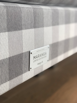 Het bed is een Limited Edition Maranga in een taupe ruit met een aluminium plaatje en hoekbescherming, in typische Hästens-stijl. Onze vakmensen hebben gedreven gewerkt om dit bed met de hand te maken, van alleen de beste natuurlijke materialen. De Hästens Maranga Limited Edition is niet alleen ontwikkeld om heerlijk in te slapen, maar ook om u de hele dag fris en uitgerust te laten voelen.