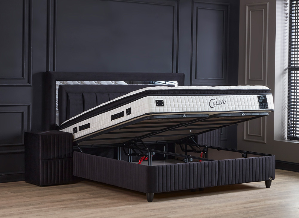 Deze prachtige elektrisch verstelbare boxspring tovert uw slaapkamer éénvoudig om tot een luxe hotel suite.