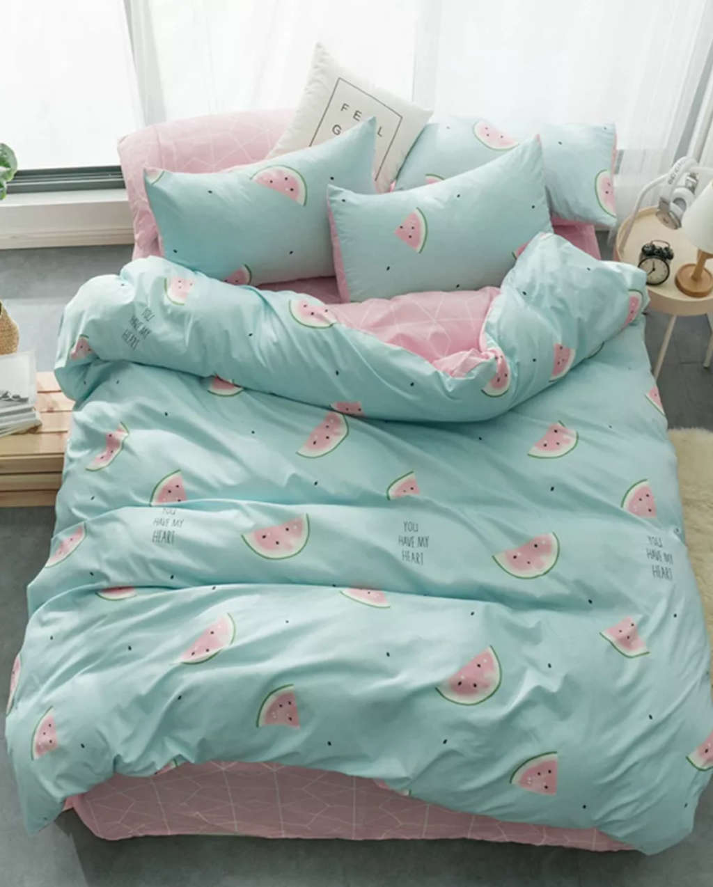 Mintgroen dekbedovertrek met watermeloenen | 2.00 x 2.30 | Shein | € 22,00
