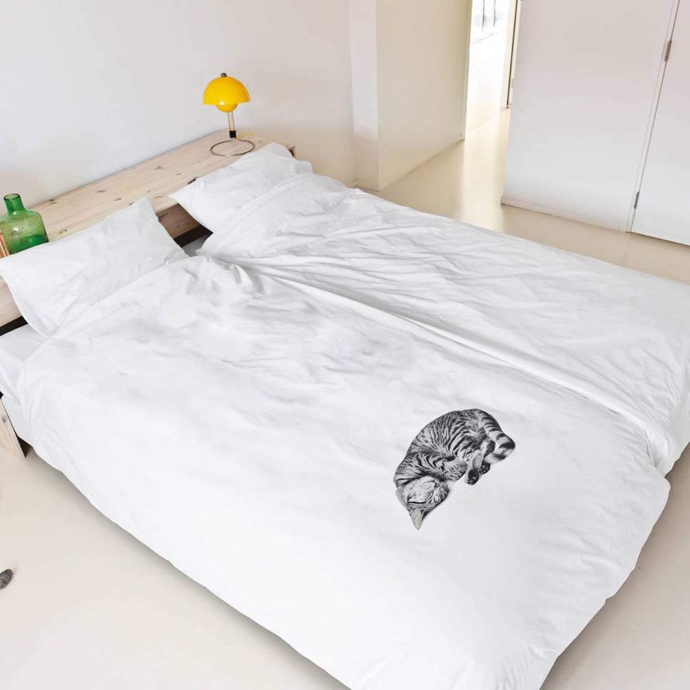 Wit dekbedovertrek met slapende kat | 2.00 x 2.20 | Snurk via Wehkamp | € 99,95