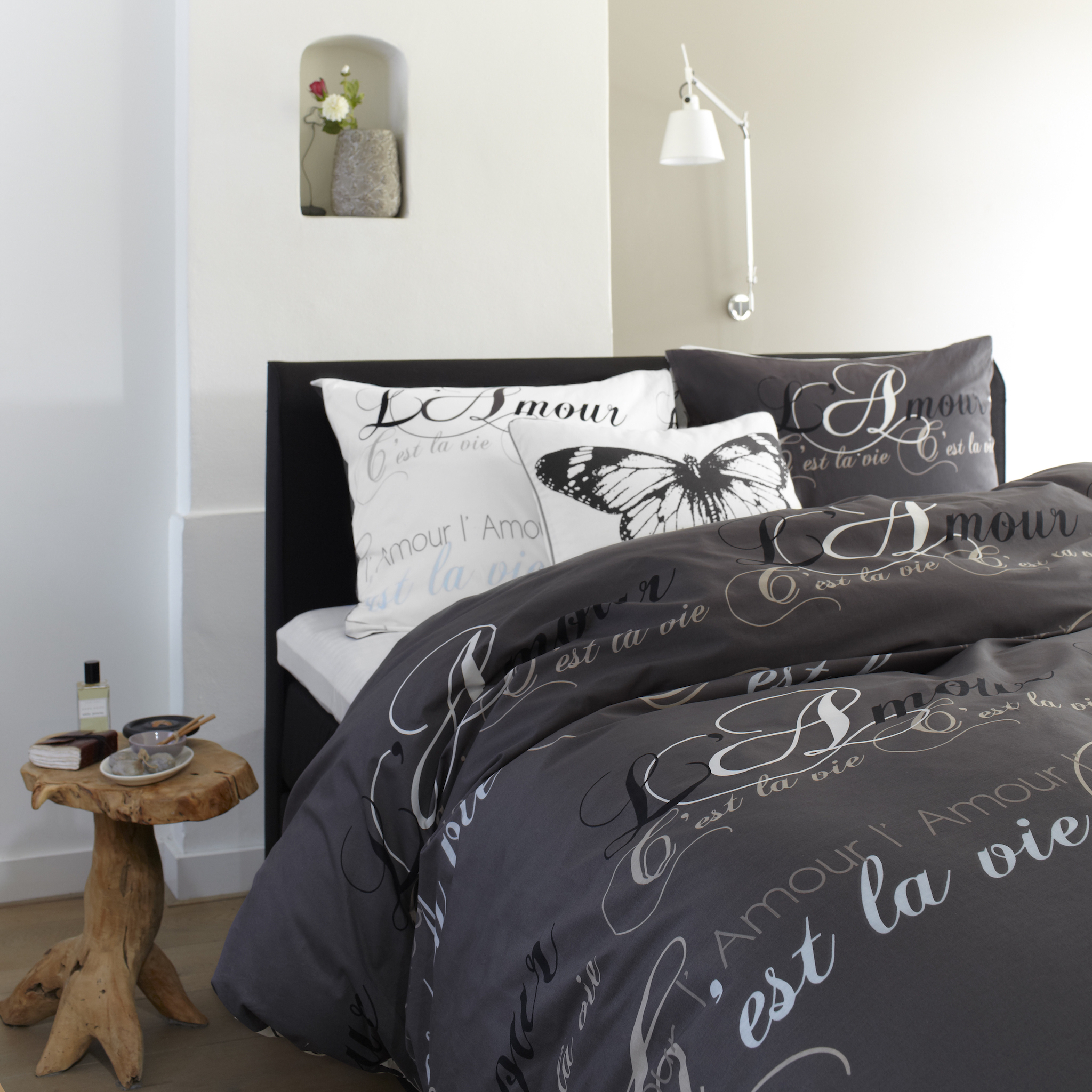 Een mooi dekbedovertrek is het eerste dat opvalt bij het binnenlopen van een slaapkamer. Houd je van romantiek, dan is het erg leuk wanneer datgene wat je wilt zeggen letterlijk staat afgebeeld op het dekbedovertrek. De termen Love en L’Amour vertellen al veel, maar Perfect Moment, Together Romance en Forever Always zijn natuurlijk ook romantische teksten.