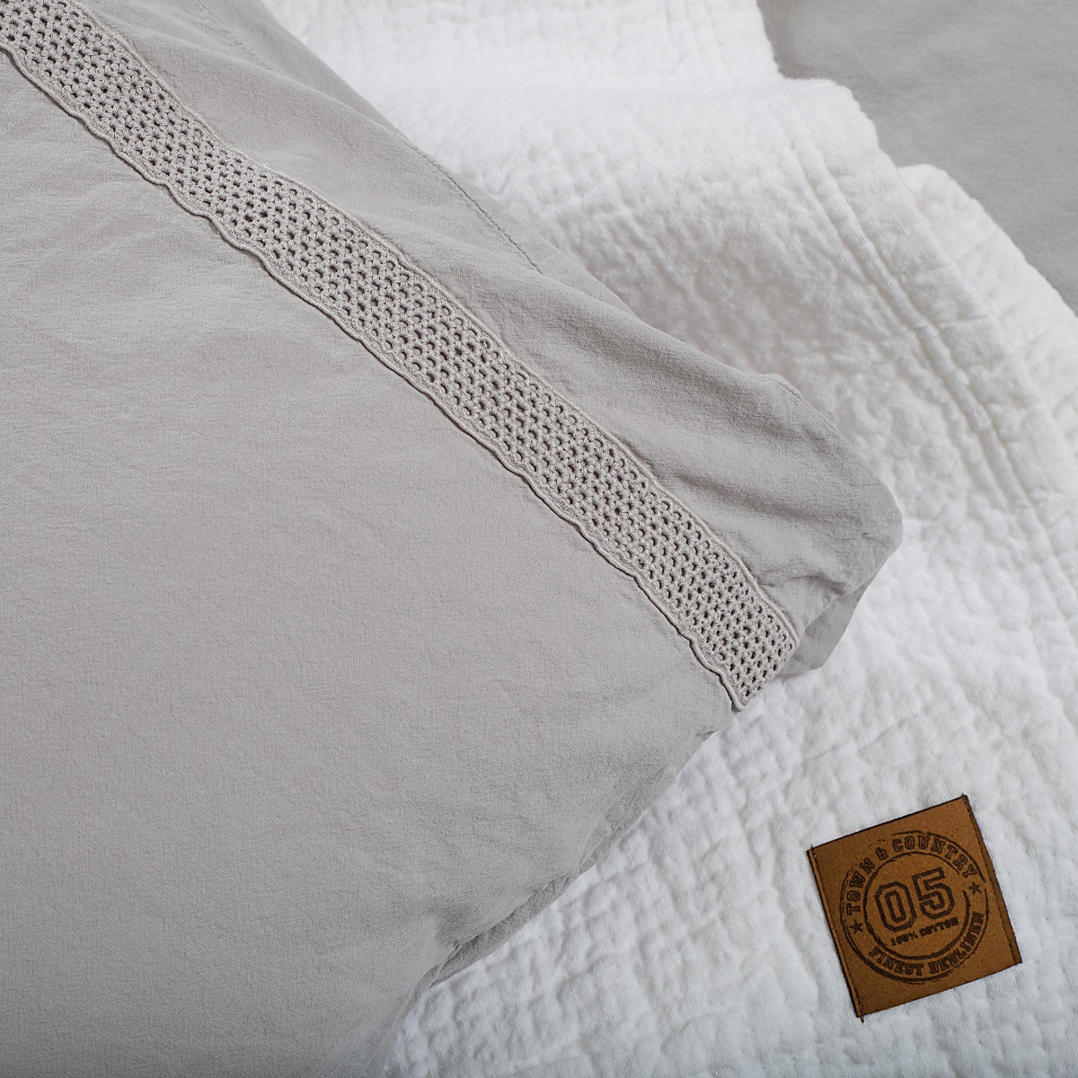 De Chester staat voor elegant, rust en stijl. Gemaakt van zuiver percal katoen. De Bovenzijde heeft een subtiele wafelstructuur,de achterzijde is uni percal